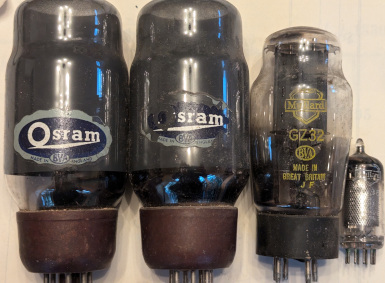 Unfortunately of the four valves installed, one was smashed and two have broken heater filaments :( I had a box of valves donated to me by a friend many years ago - mostly TV ones. By pure luck I found an equivalent for the AF valve (UCL82 -> PCL82) and a rectifier valve (EY85->EZ80) I could substitute! The main issue is the heater filaments are different current / voltage ratings.