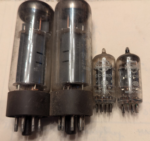 On the upside, all the valve heater filaments seemed to be intact! This is extraordinary! I thank both the designers for specifying metal cased valves and the weight of the chassis in damping any possible shocks.. I was hopeful we had a full set of working valves :)