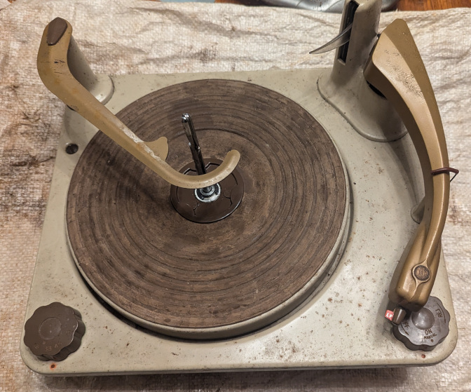 (The replacement stylus is actually from another vintage player! A 1968 ITT Kolster-Brandes KP036 ‘Coloursound’ from a local auction. £10! This one is transistor based, so less interesting for me to fix up..)